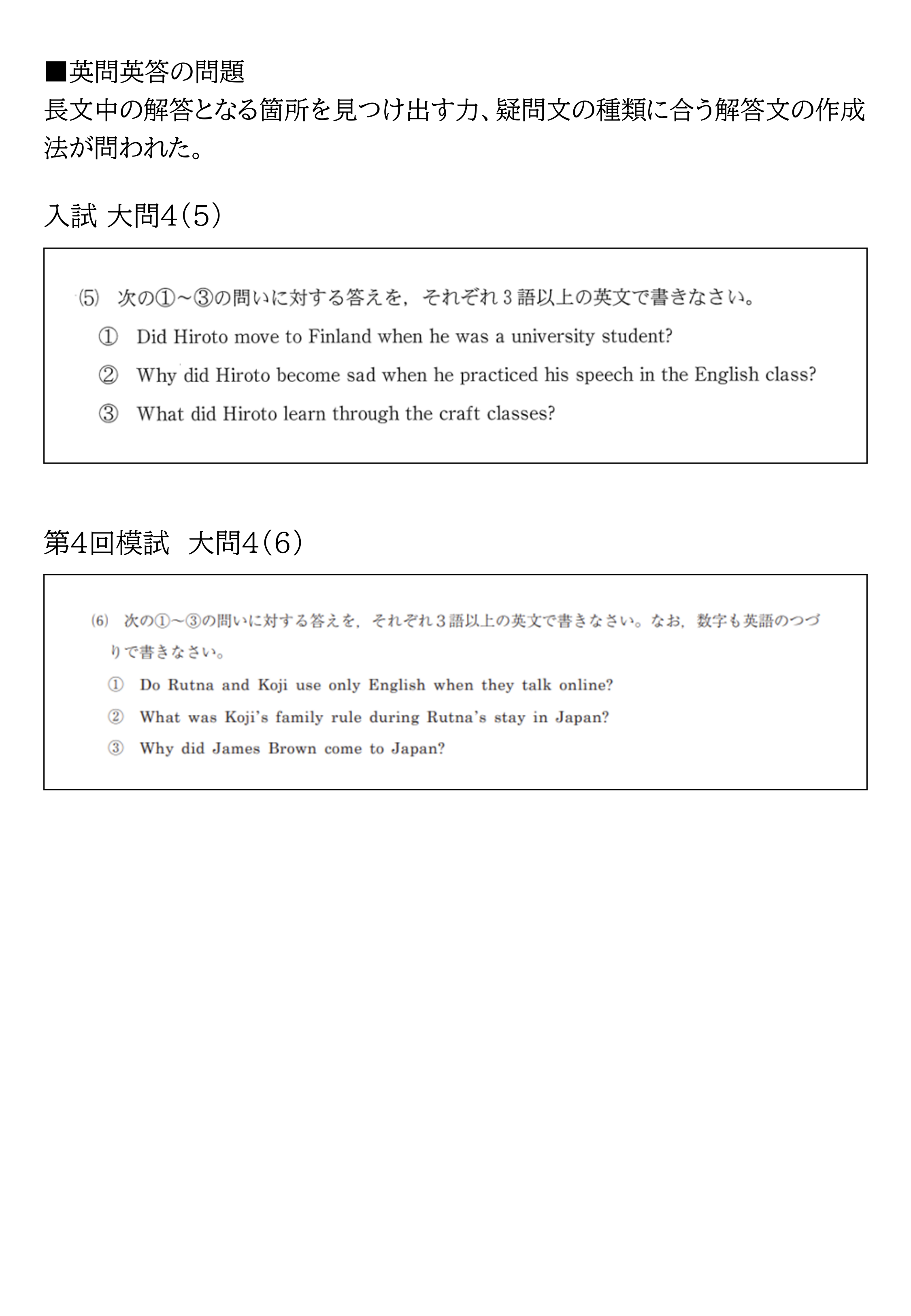 今年度の入試におきましても、当会が実施した模試から類似問題が多数出題されています。「あの時、模試で解いた問題だ!」と本番で実力を発揮できた受験生も多かったのではないでしょうか。